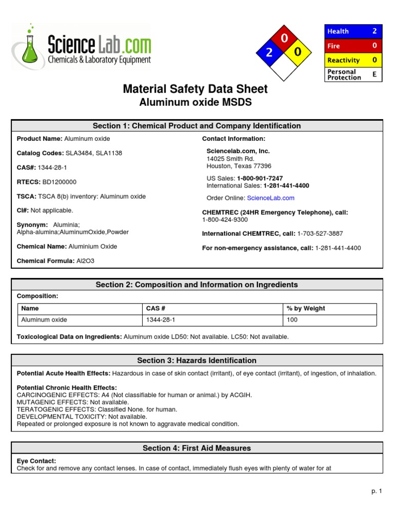 Aluminum Oxide Safety Data Sheet