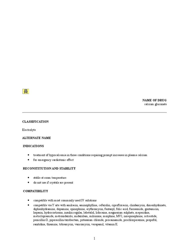 Calcium Gluconate Medication Template
