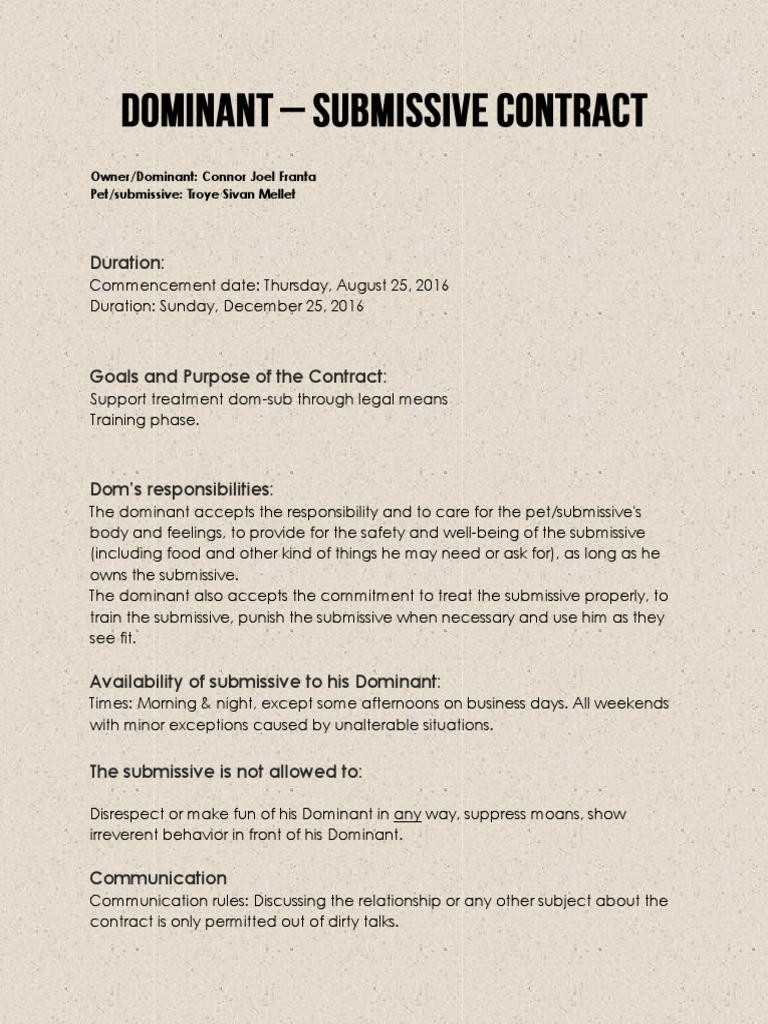 Web discover how to creates a bdsm contract online at dom sub living. Web dom/sub contract template guidelines this agreement defines, in precise terms, the relationship and interaction between two. Will a bdsm contract is an essential tool before you. Web contract of submission thiscontract is written to make clear the duties, rights and obligations of both noah dolan, the..