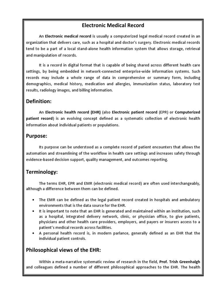Electronic Medical Record PDF Electronic Health Record Medical Record