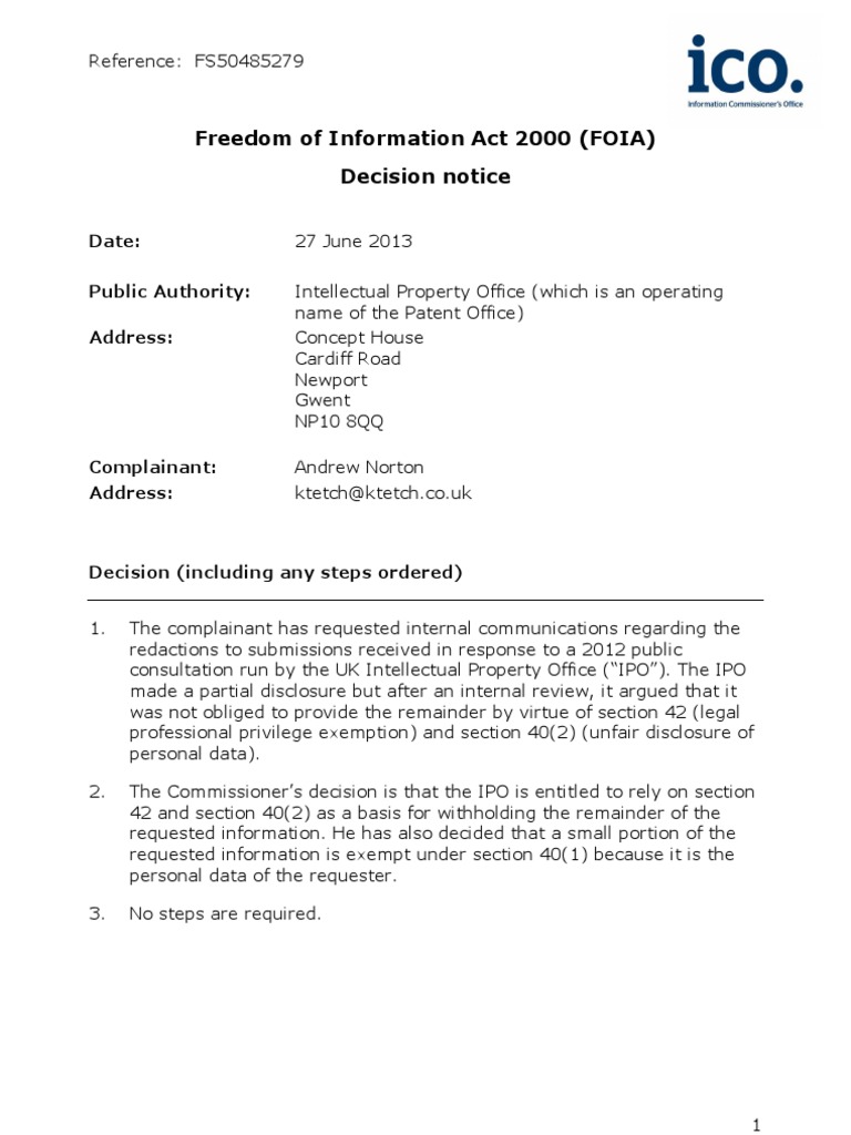Freedom of Information Act 2000 (FOIA) Decision 27/6/13 Personally