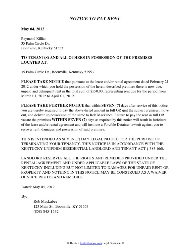 Web A Kentucky 7 Day Notice To Quit Is A Letter Which Complies With State Legal Requirements To Begin Eviction.
