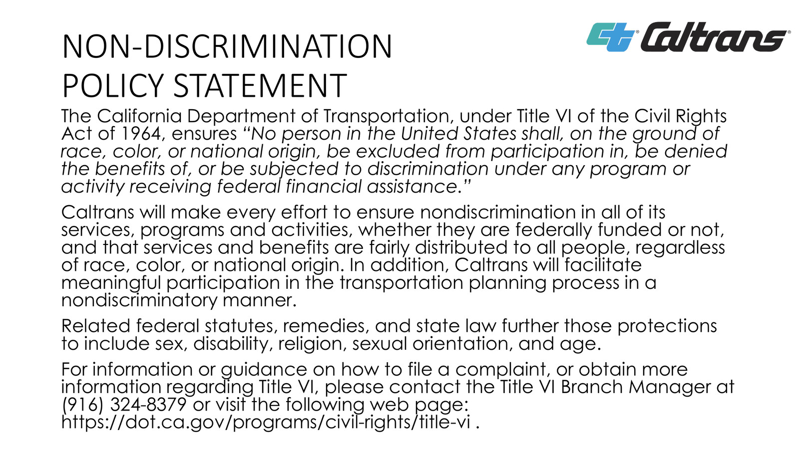 NonDiscrimination Policy Statement Slides by Arellano Associates