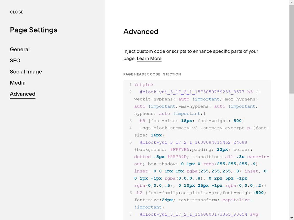 Page Header Code Injection Squarespace