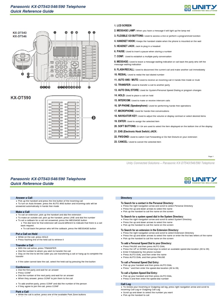 PANASONIC KXDT543 QUICK REFERENCE CARD Pdf Download ManuaLib