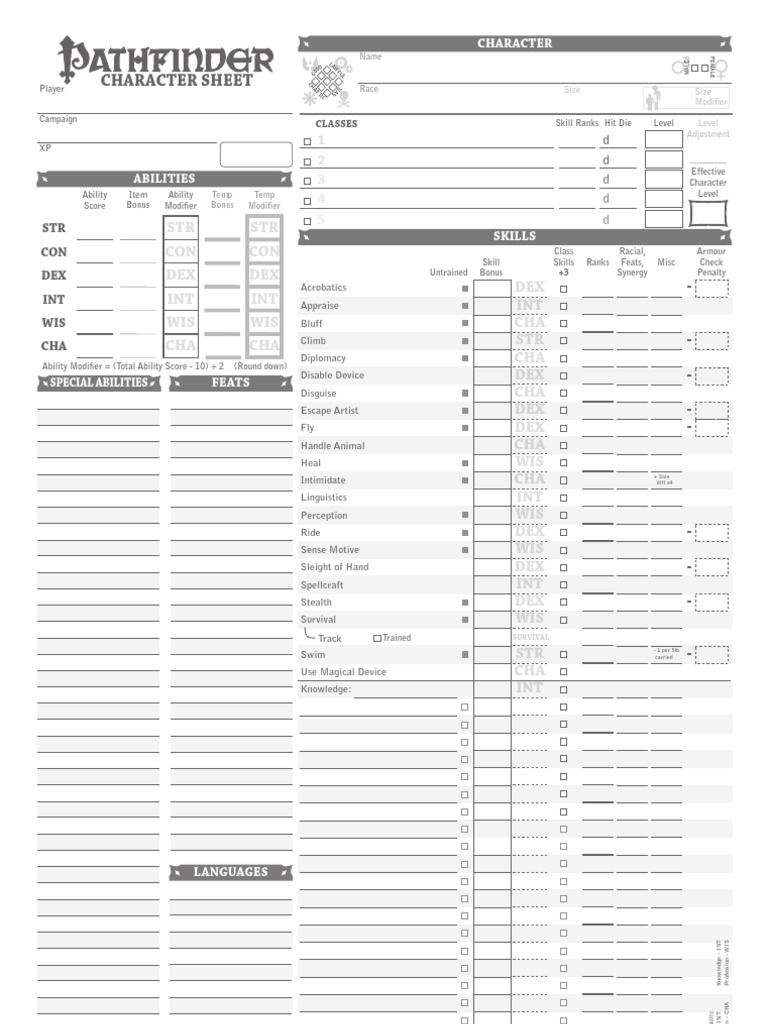 Pathfinder Character Sheet Printable