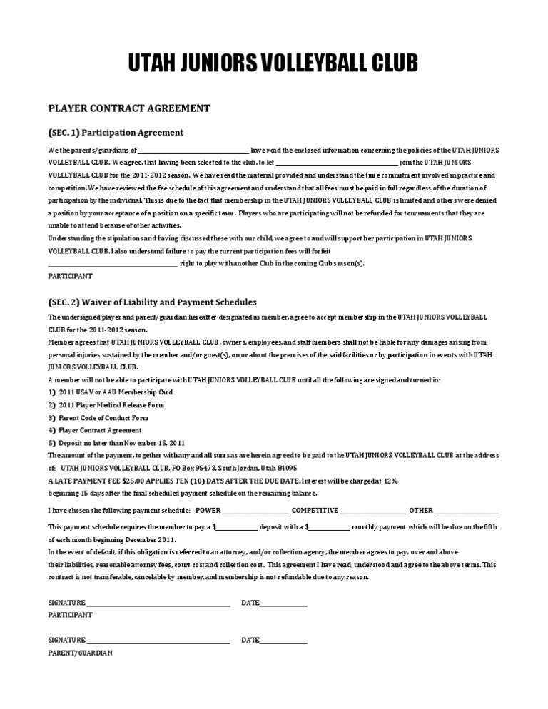 Player Contract Agreement PDF Fee Legal Guardian