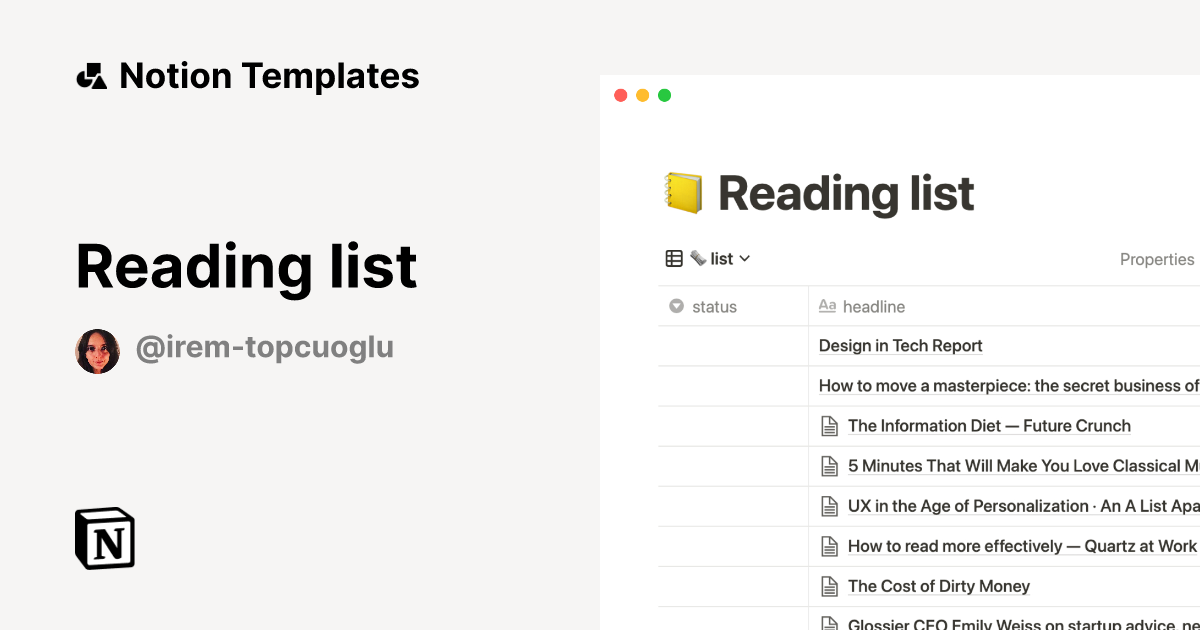 Reading list Notion Template