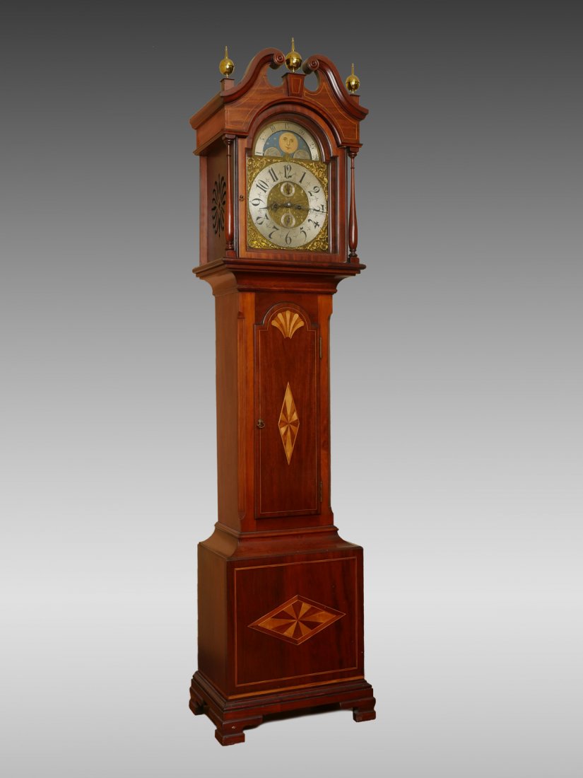 INLAID MOON PHASE GRANDFATHER CLOCK