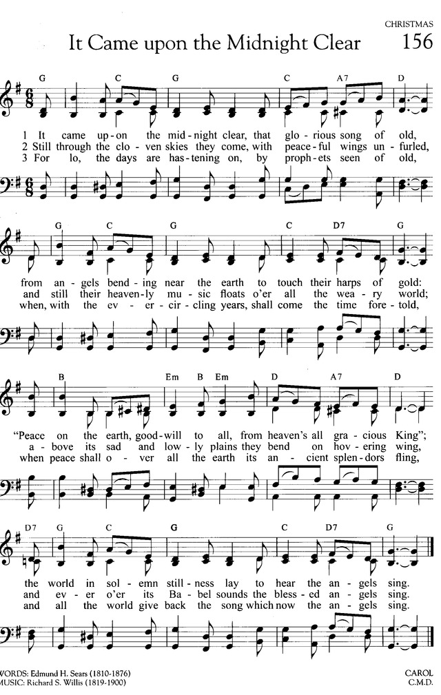 It Came Upon the Midnight Clear Christmas sheet music, Hymn sheet