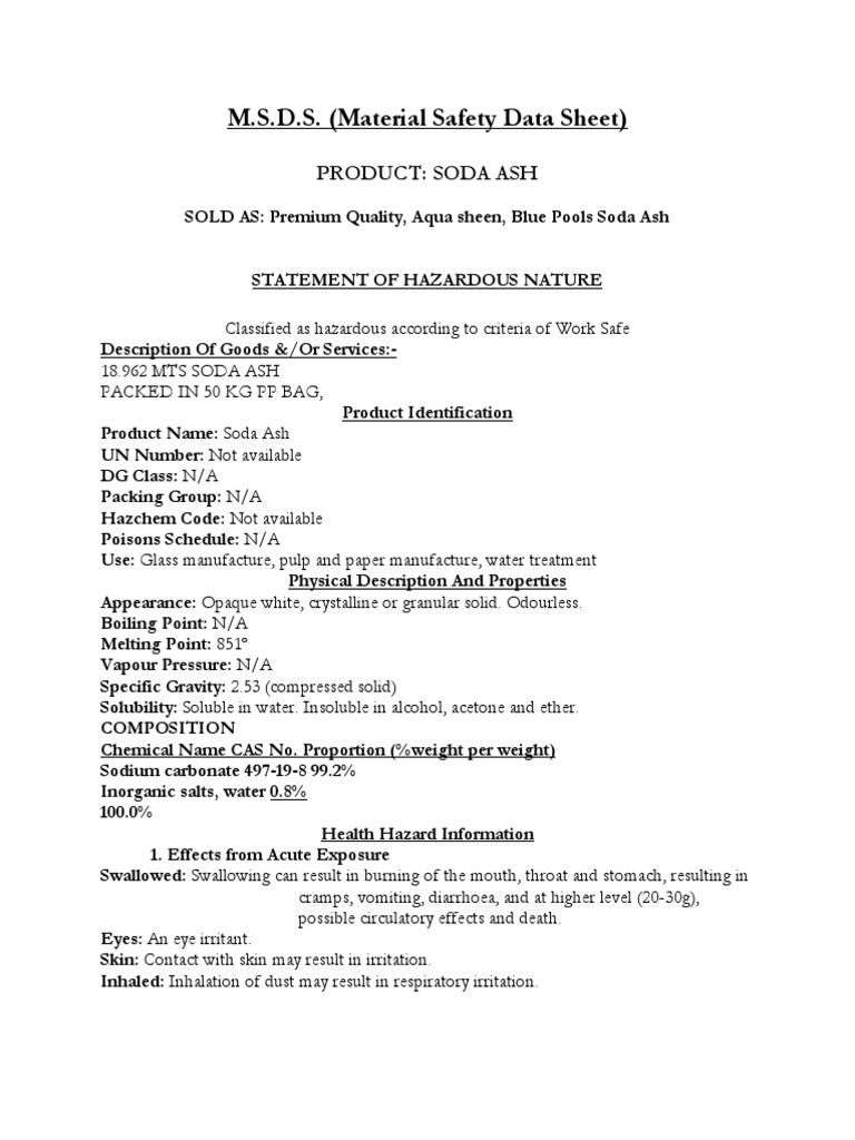 Soda Ash Safety Data Sheet - No data available explosion limits: Soda ash (sodium carbonate) un/na number: Web 8 rows şişecam sds | soda ash / sodium carbonate flash point: