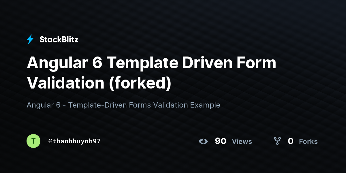 Template Driven Form Validation In Angular Stackblitz - Web in this tutorial, i will show you how to implement angular template driven forms validation example (and submit). How to use the ngmodel. Suppose i have this simple form with some fields (.