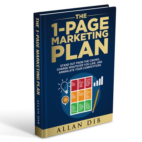 Create a captivating business book cover for "The 1Page Marketing Plan