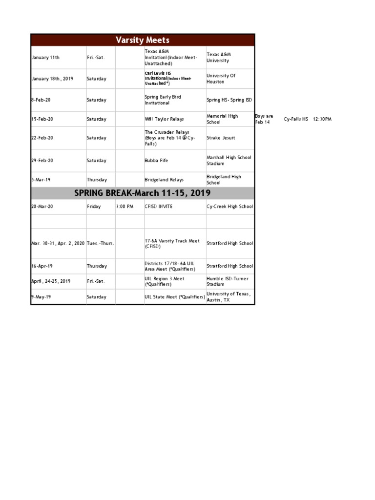 2017 UIL Track Meet Schedule Updated PDF Track And Field Games Of
